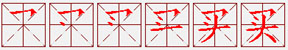 (会意。小篆字形,从网贝。“网”是收进,“贝”是财货。合起来表示把财货购进来。本义:买进,购进)