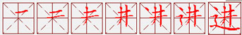 1: 收入、买入。 【组词】:进帐、进货、日进斗金