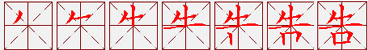 (会意。甲骨文字形,上面的“牛”,牛触人,角着横木,所以告人也。从口,从牛。本义:报告,上报)