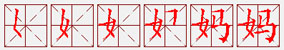 3: 称母亲,常叠用。 【组词】:「妈妈」。