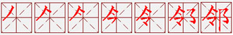 形容词: 附近的、接壤的。 【组词】:「邻国」、「邻居」、「邻座」、「邻村」。