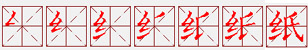 (形声。从糸(mì),氏声。纸的原料本是破旧的丝绵,故从糸。本义:纸张)